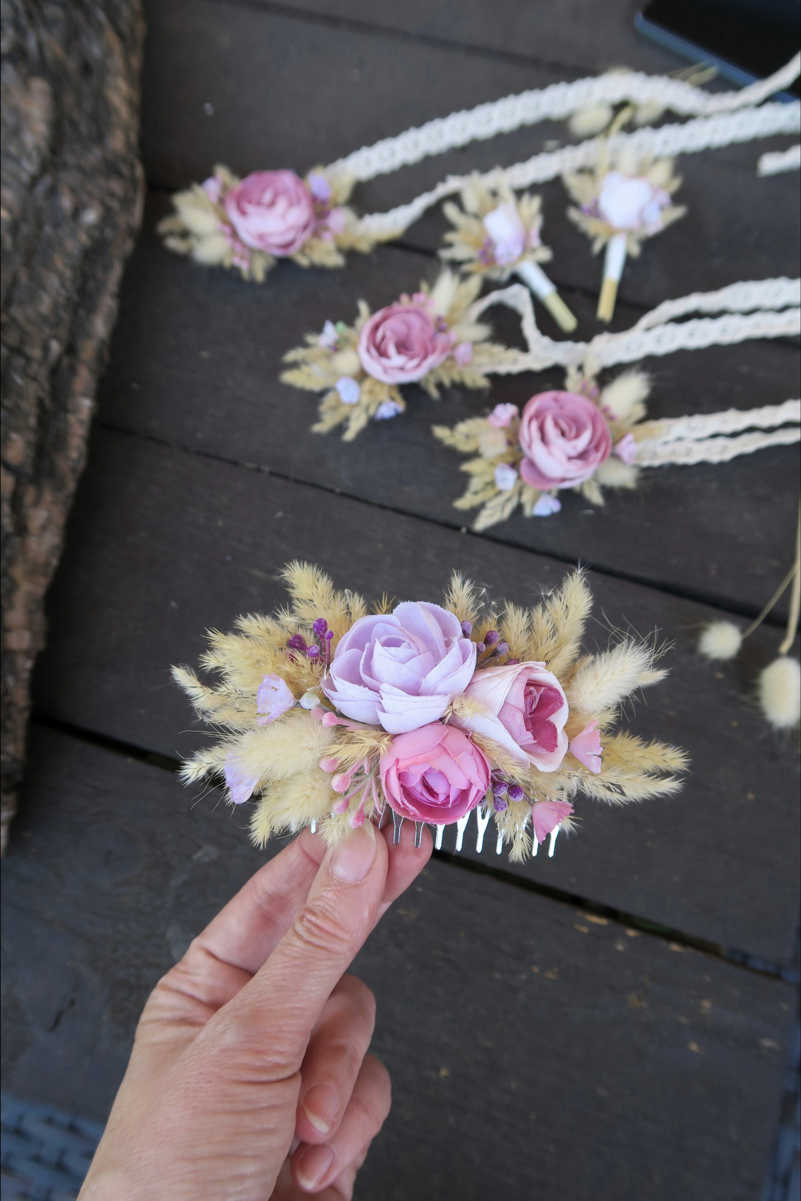 K hřebínku je možné vyrobit i další květinové šperky.
