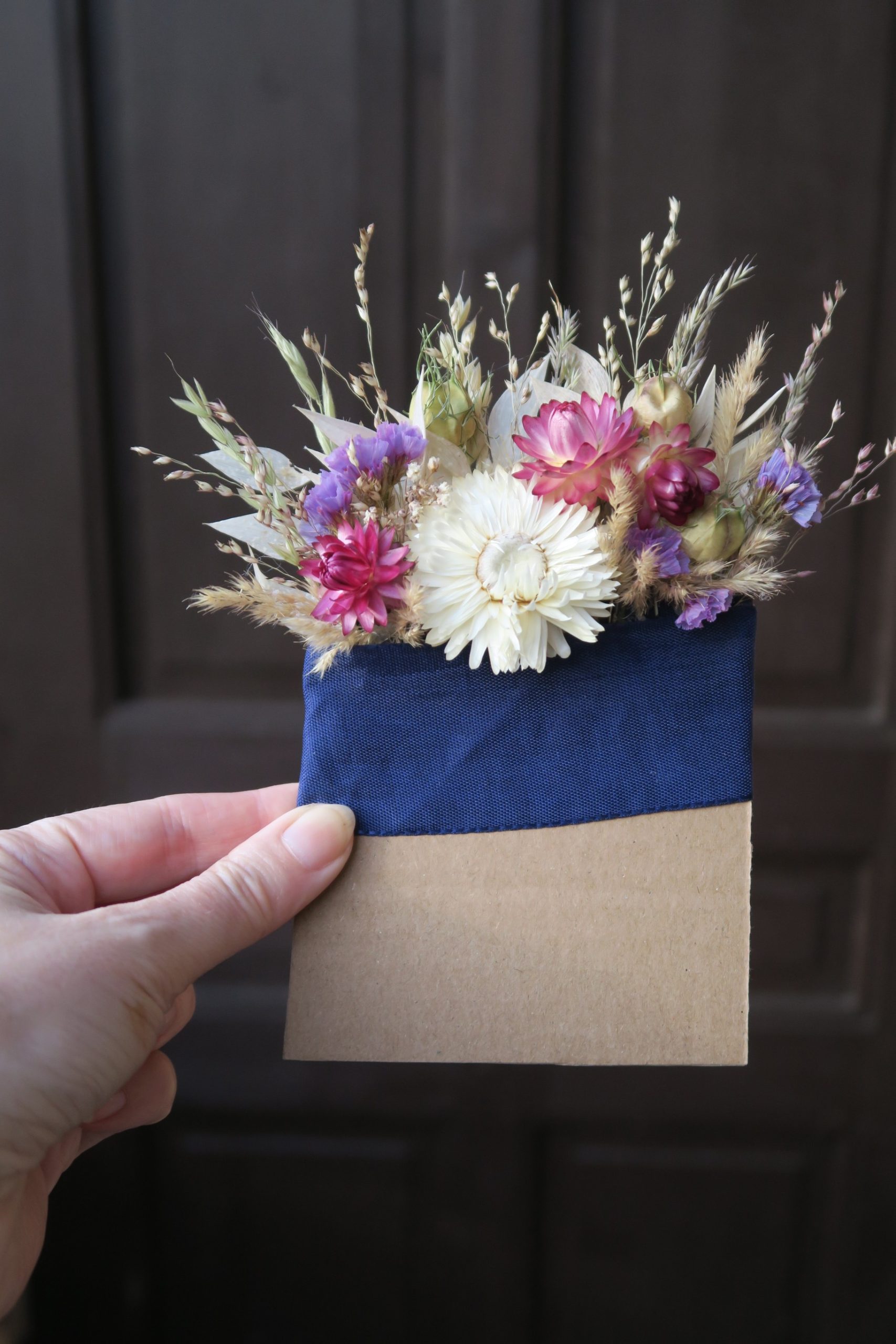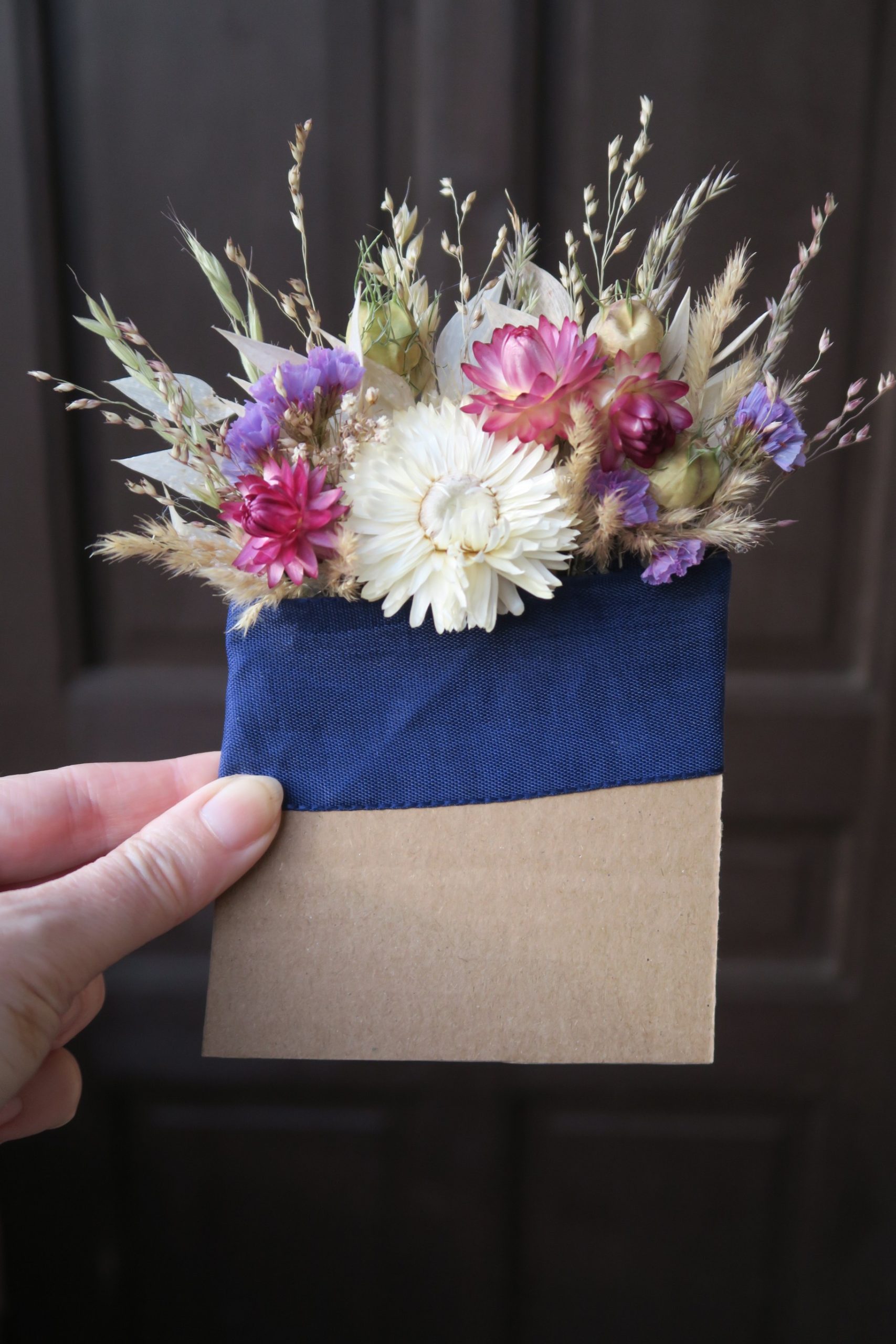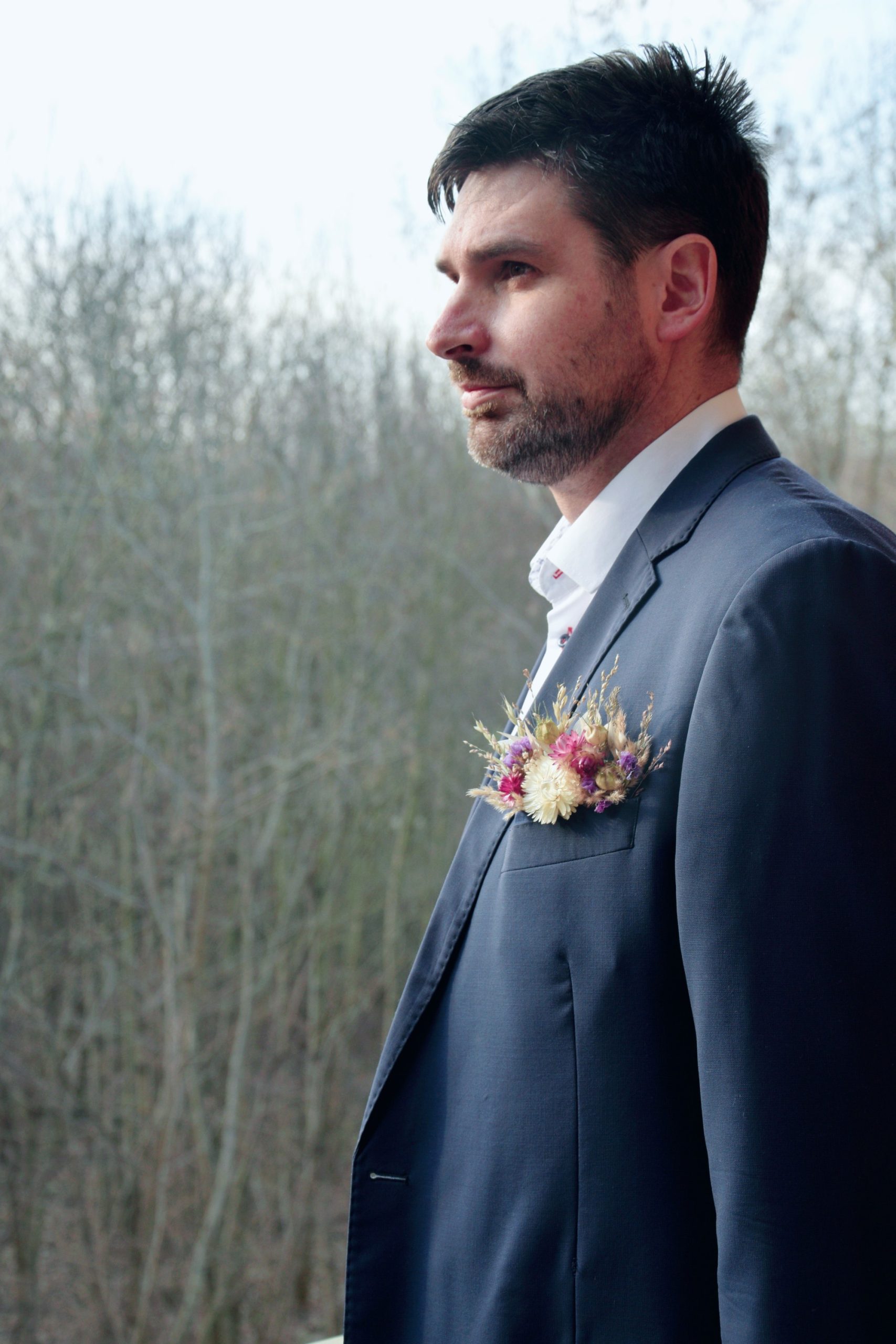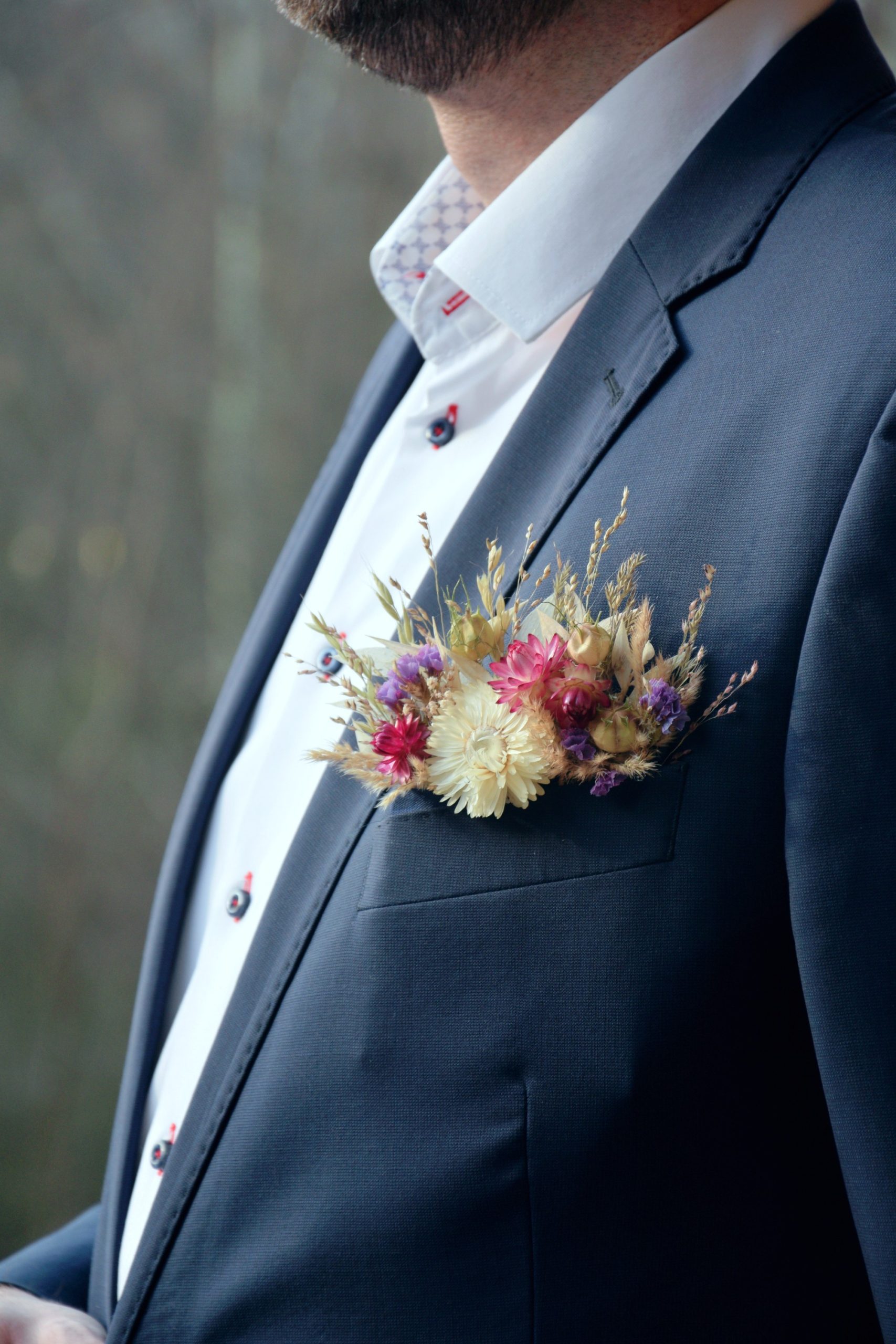 Korsáž do kapsy pro ženicha ze sušených kytiček a travin.