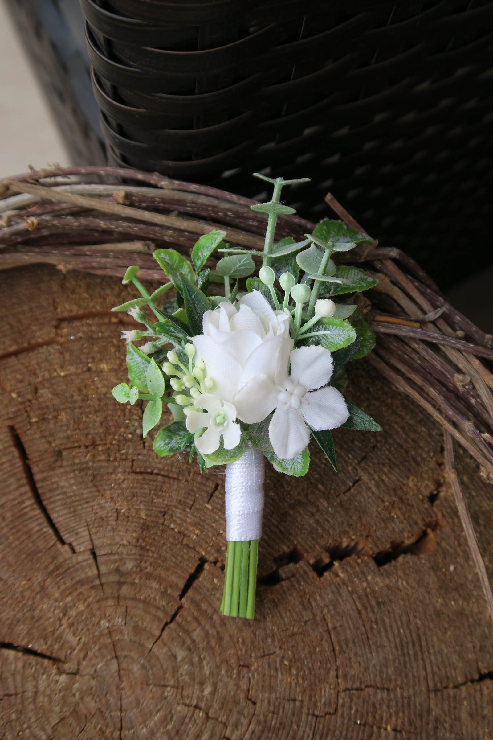 Součástí je floristická pomůcka pro snadné přichycení na oděv.