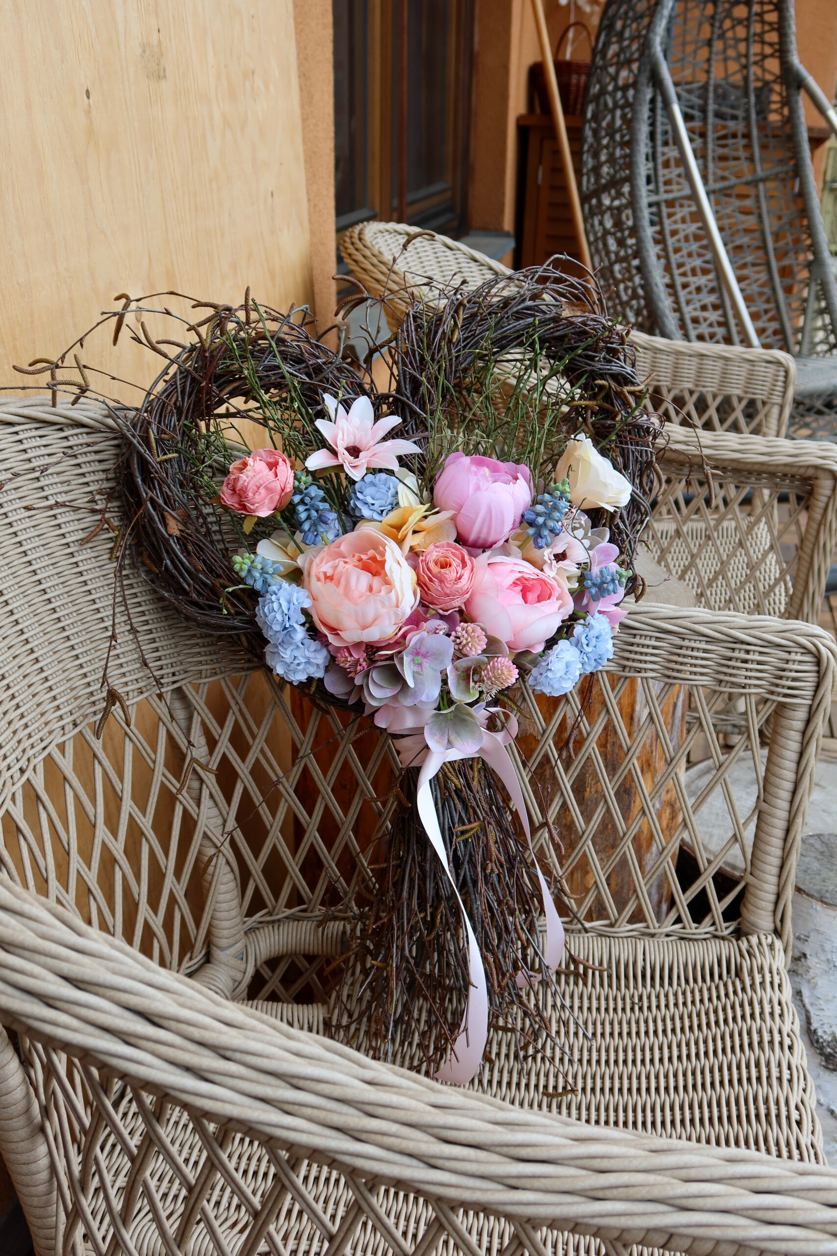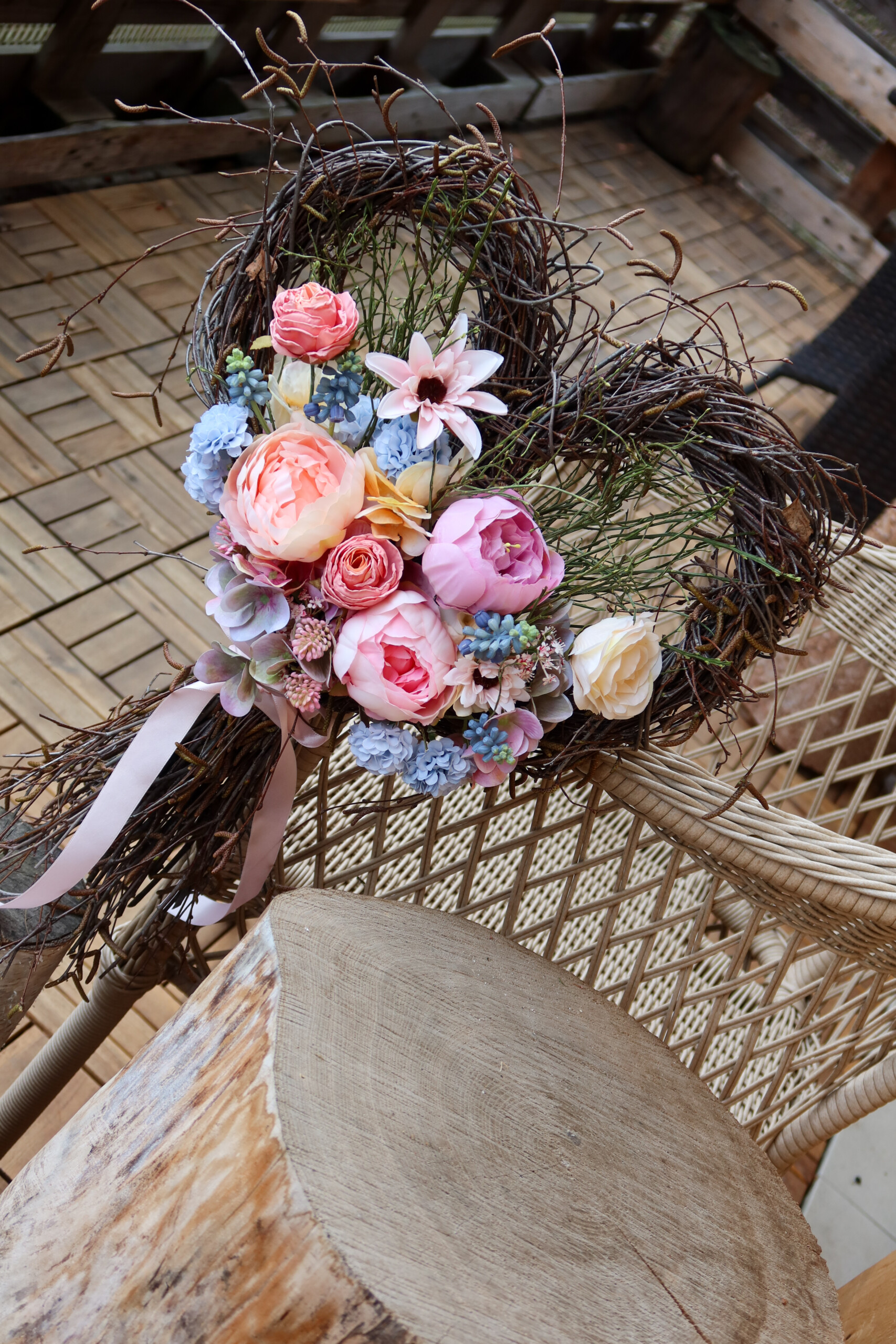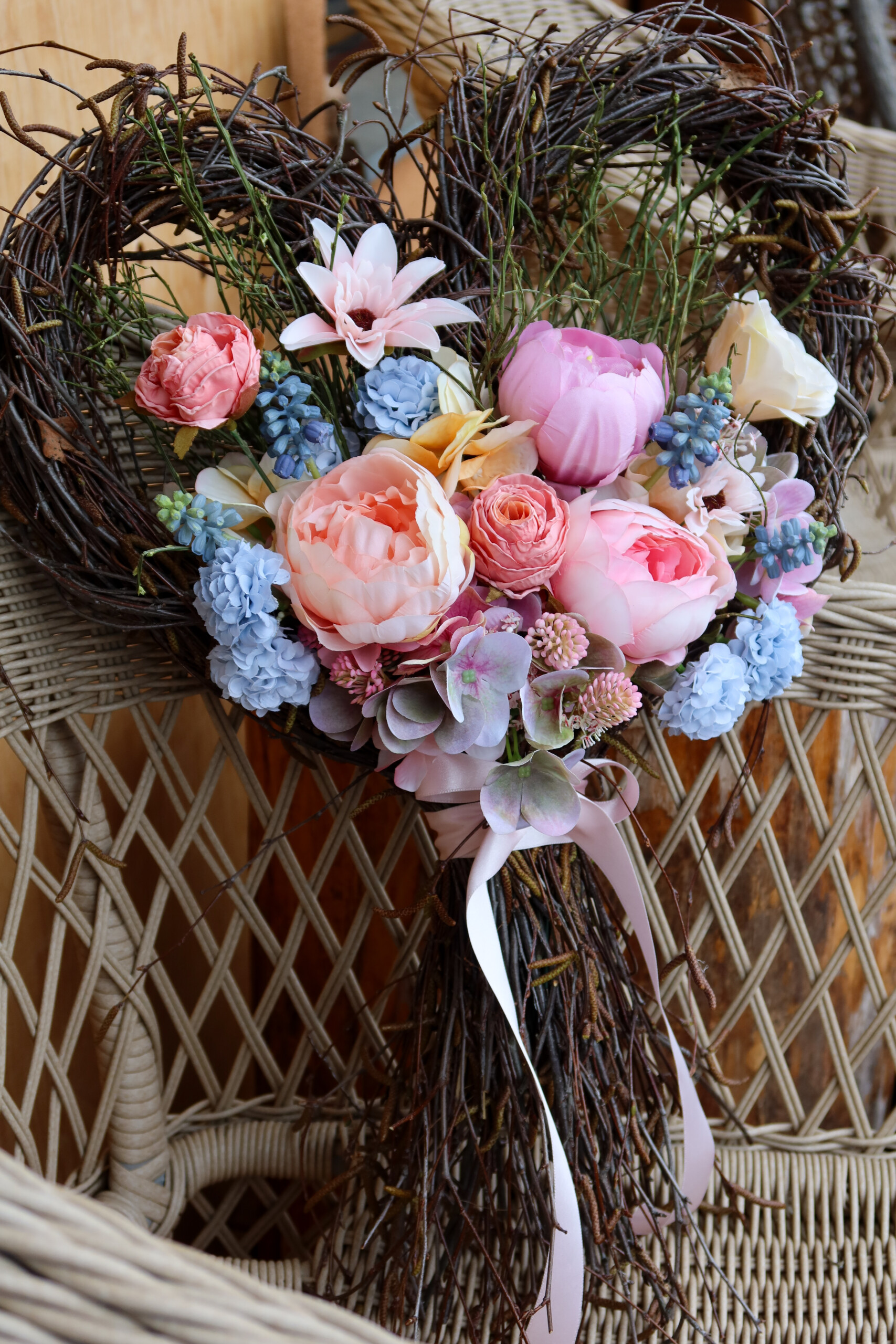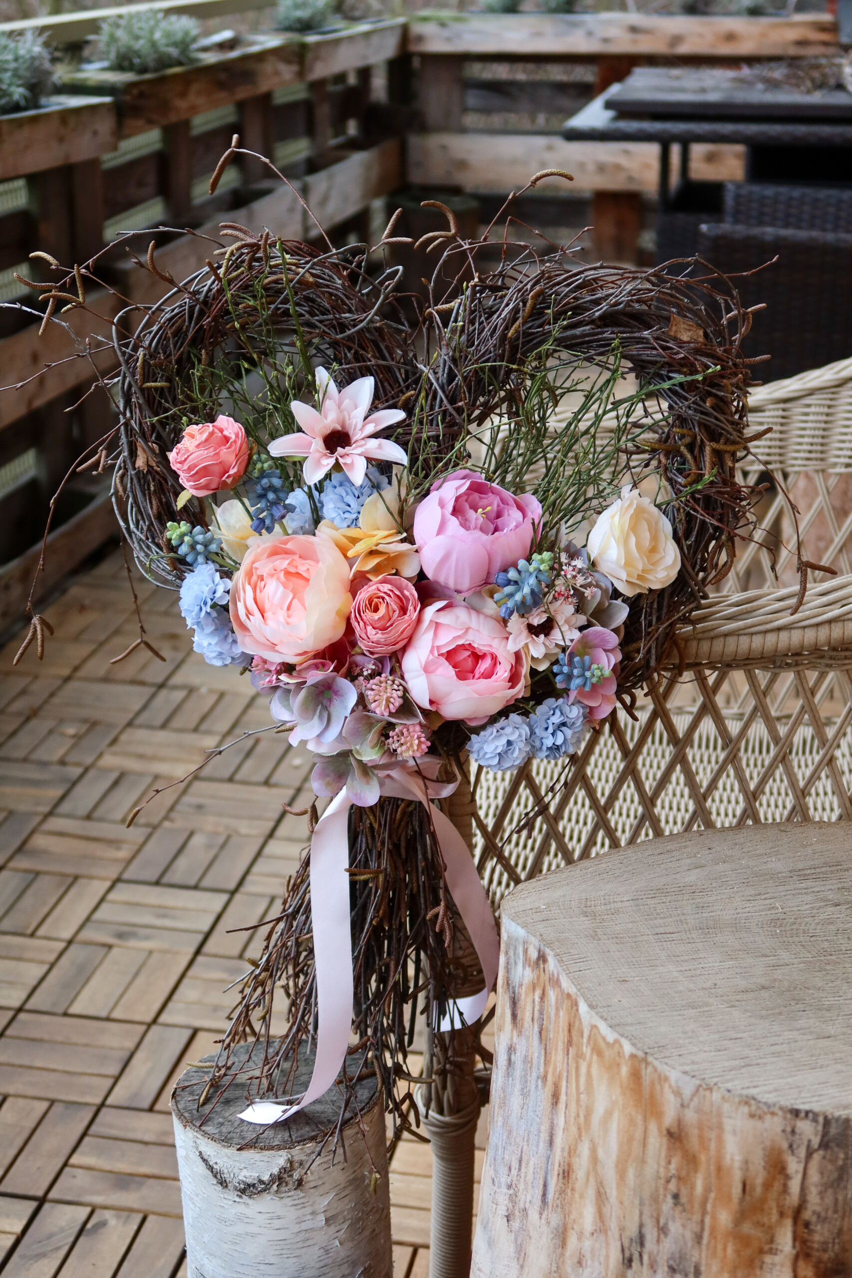 Něžné květinové srdce vhodné jako svatební výzdoba nebo svatební dar, trvalá dekorace.