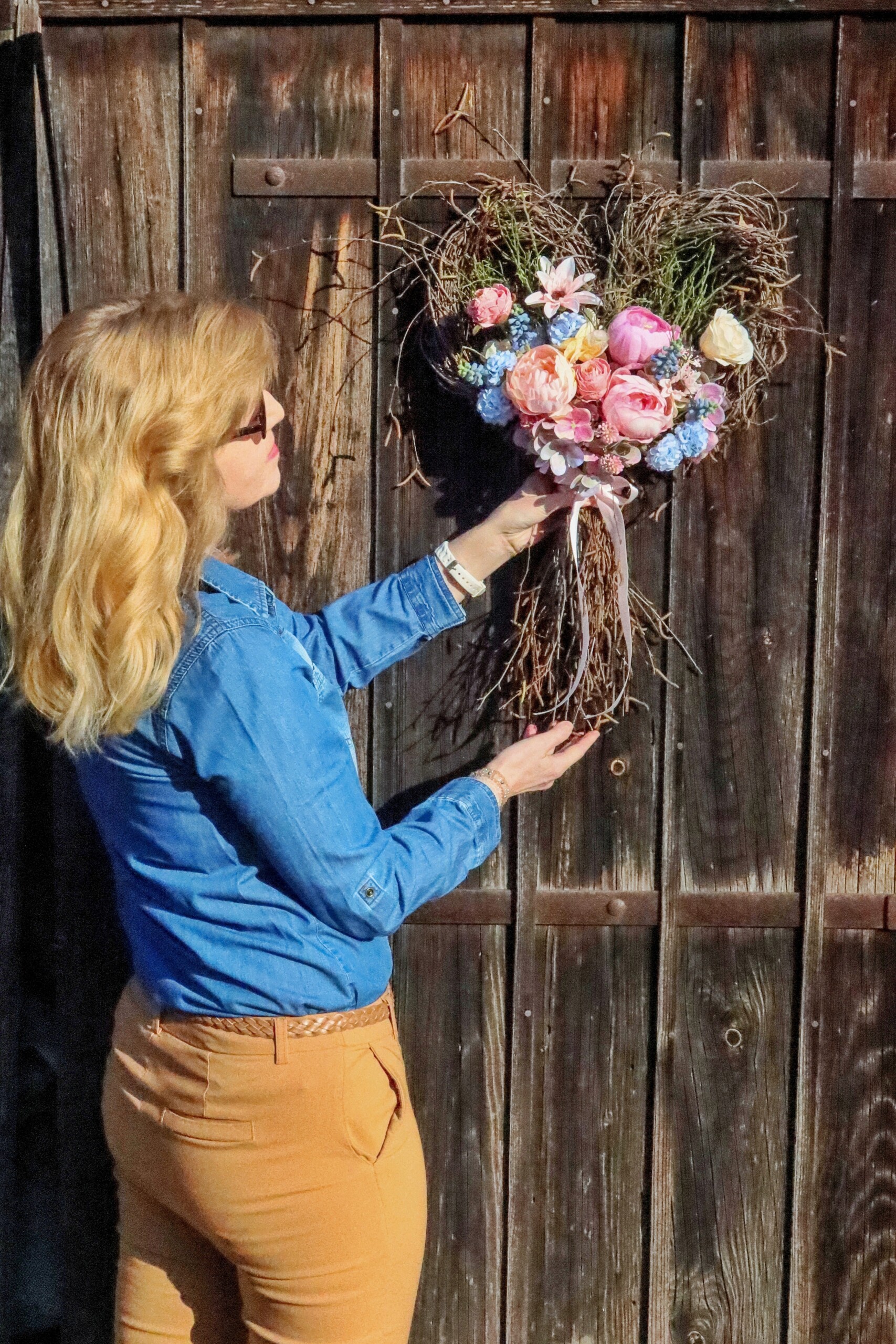 Toto srdce již svou majitelku má, ráda vyrobím další – přízdoby se můžou mírně lišit s ohledem na aktuální dostupnost použitých květin. Barevnost na přání. Foto nově uvázaného srdce ráda zašlu.
