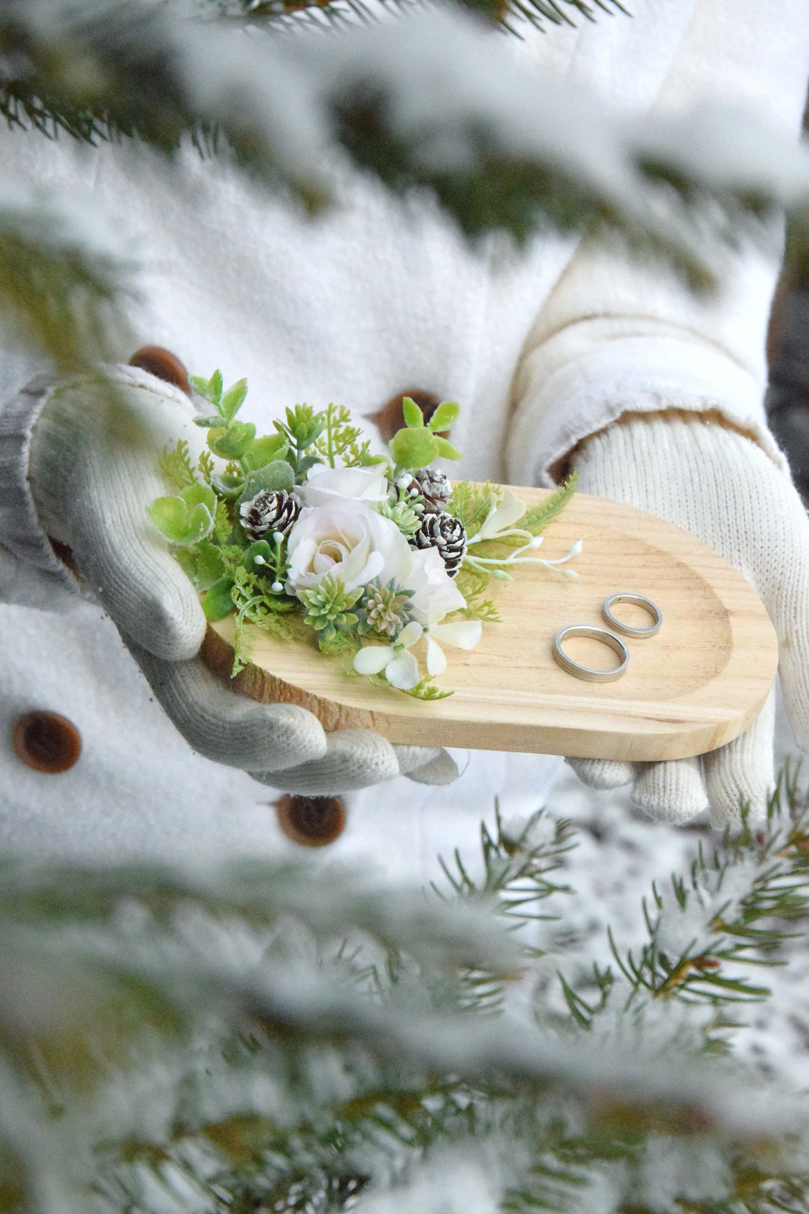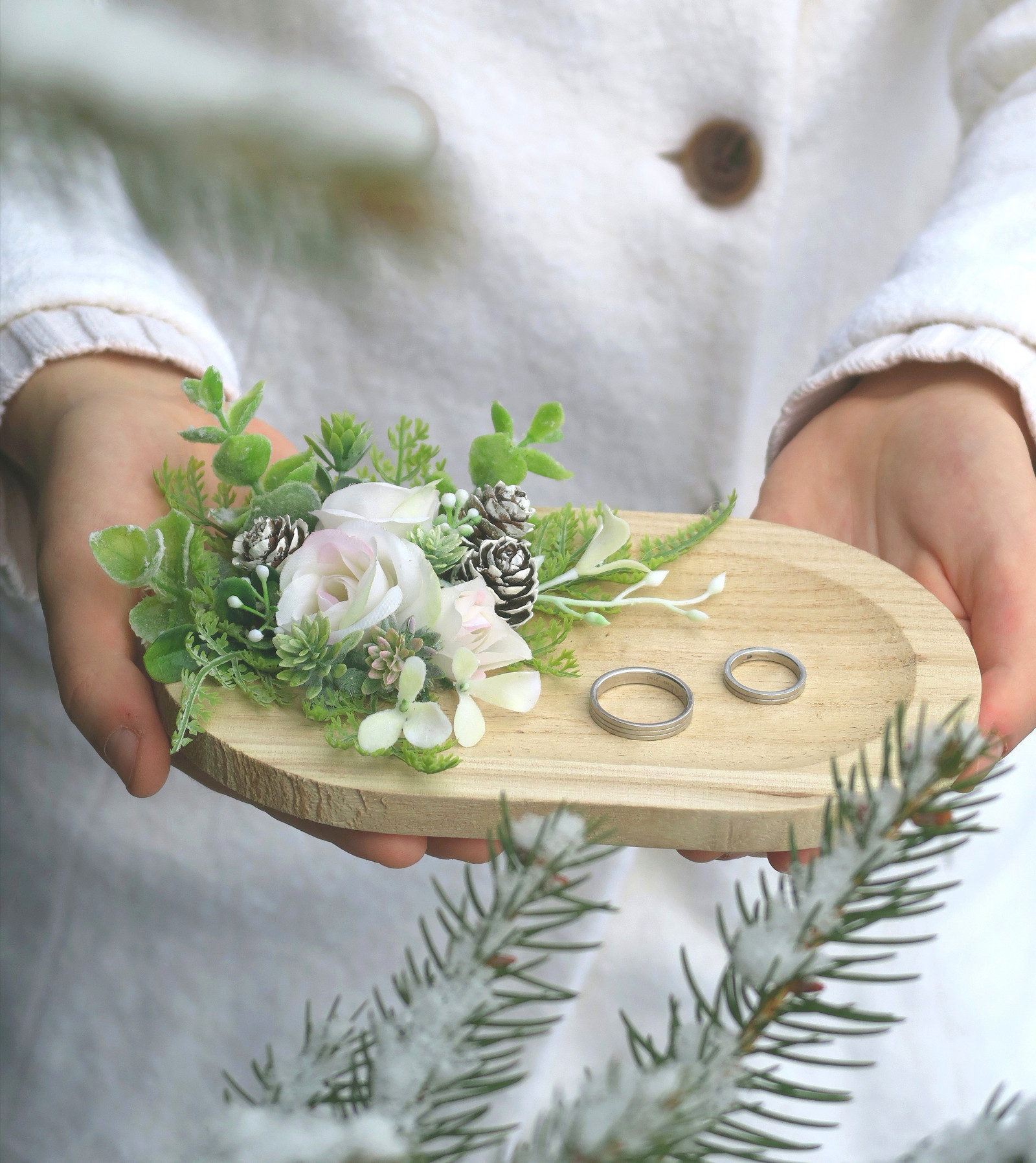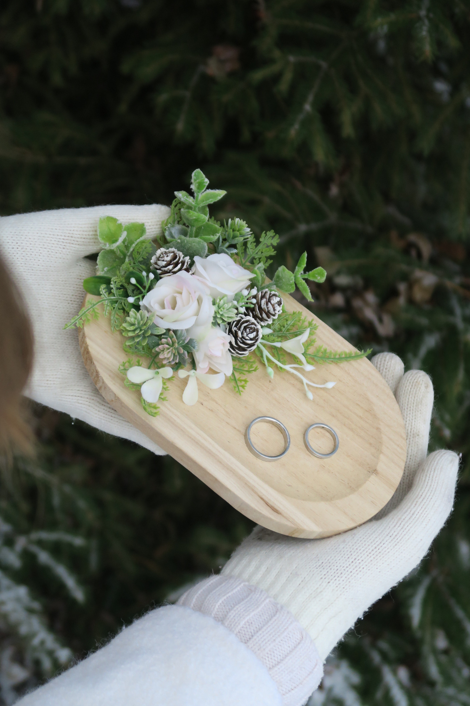 Dekorační tácek na prstýnky. Zimní zdobení.