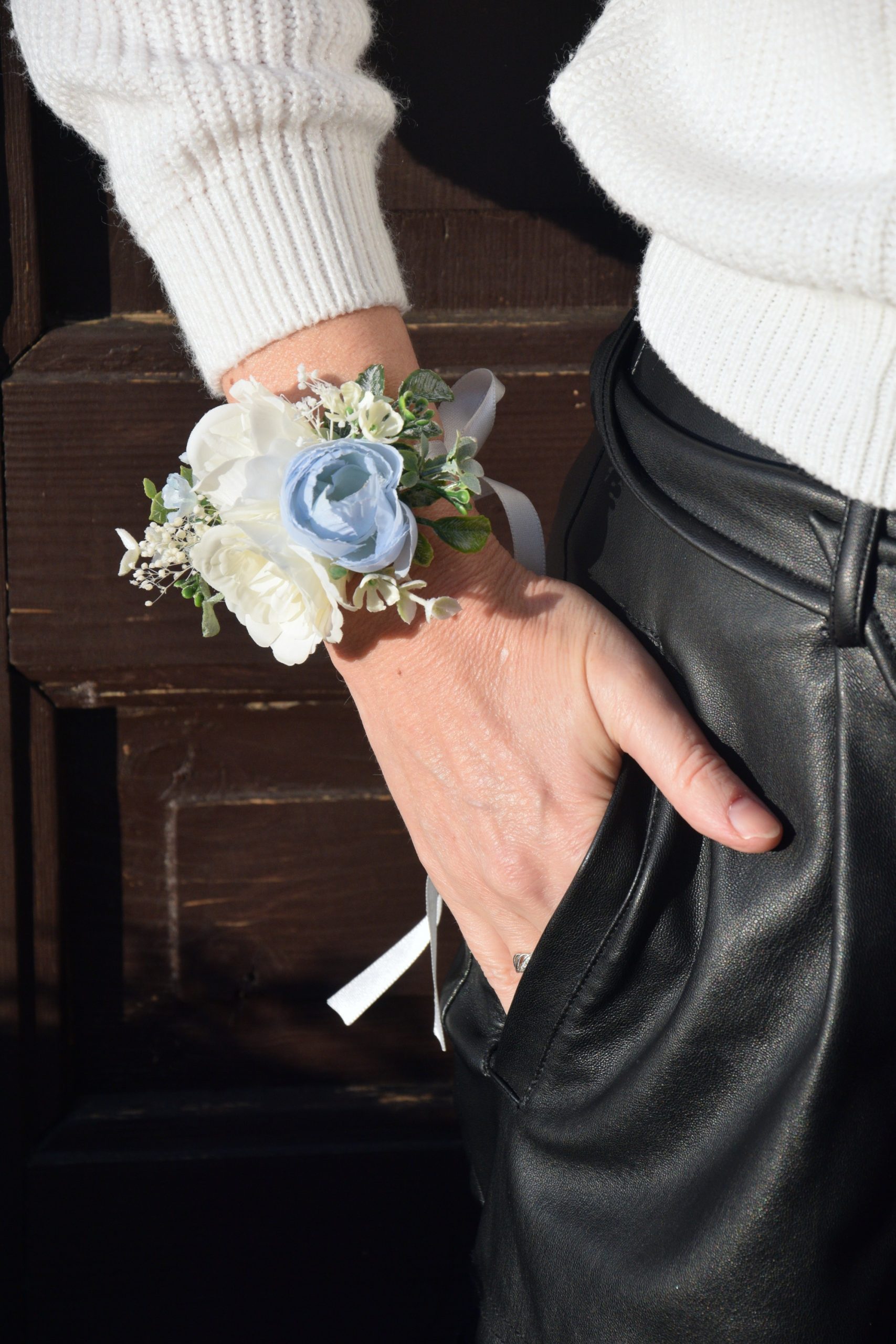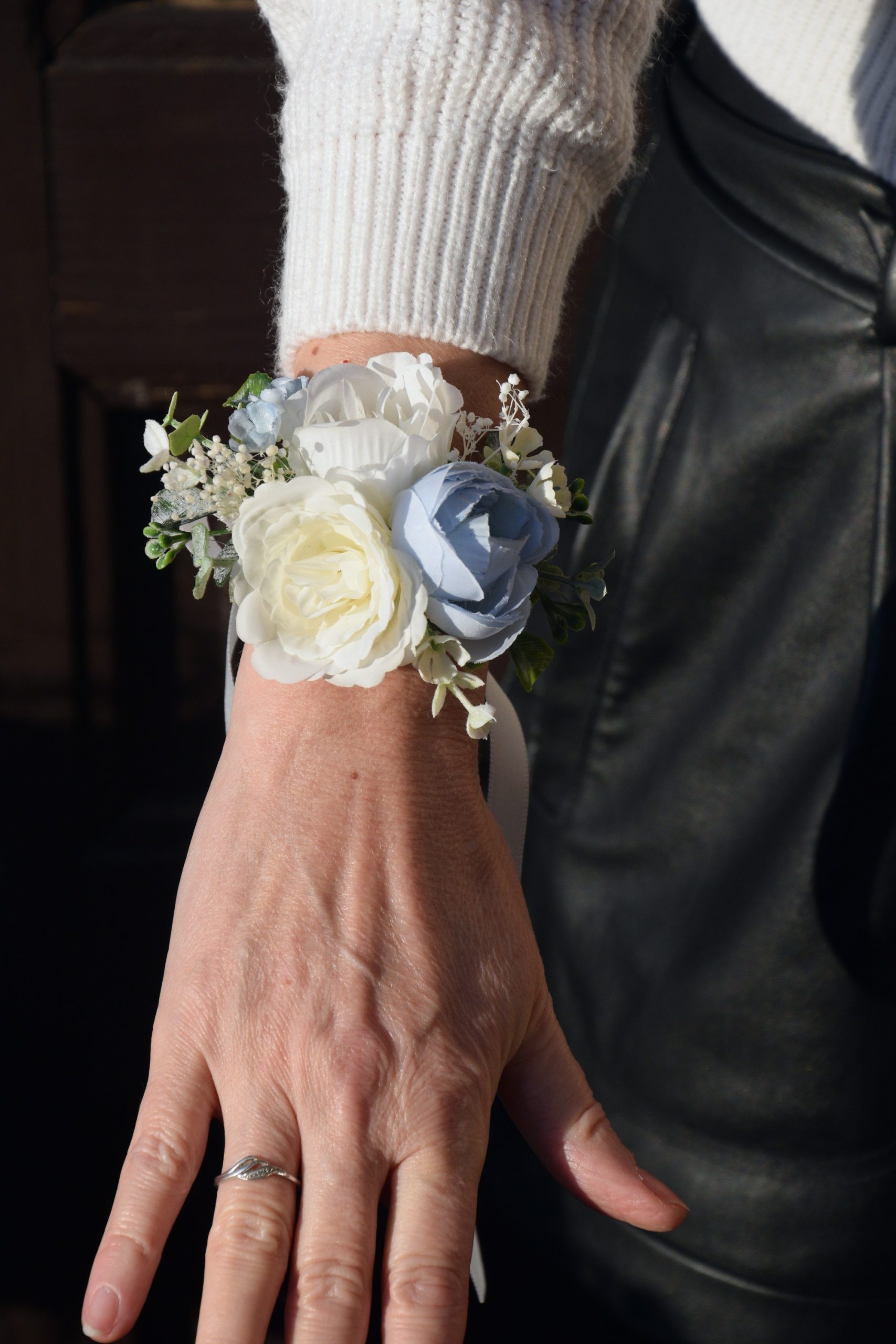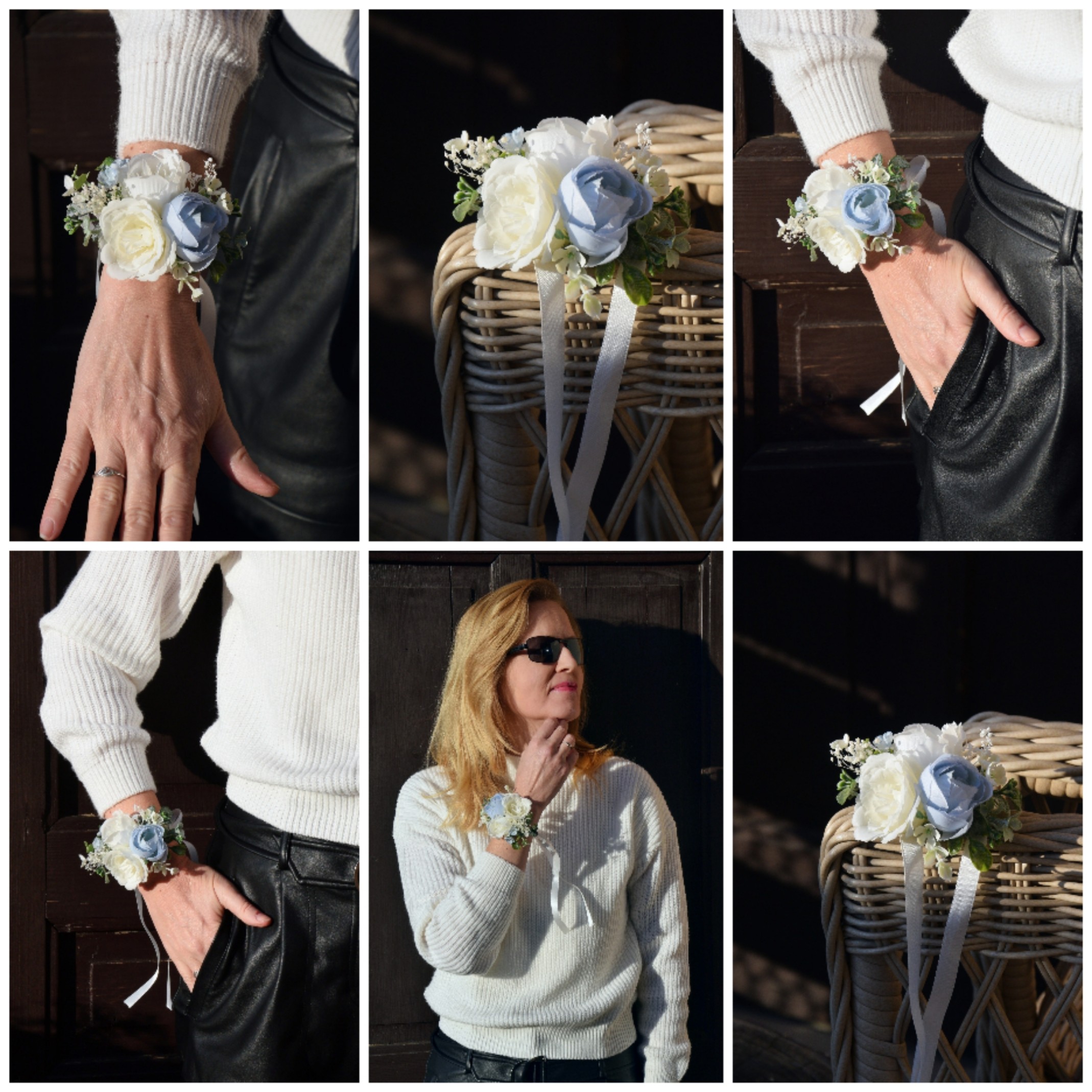Náramky jsou vyrobené na stužce zdobené textilními kytičkami a dalšími přízdobami.