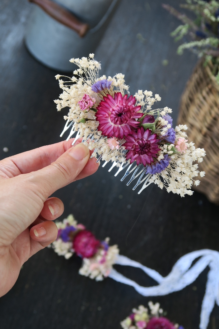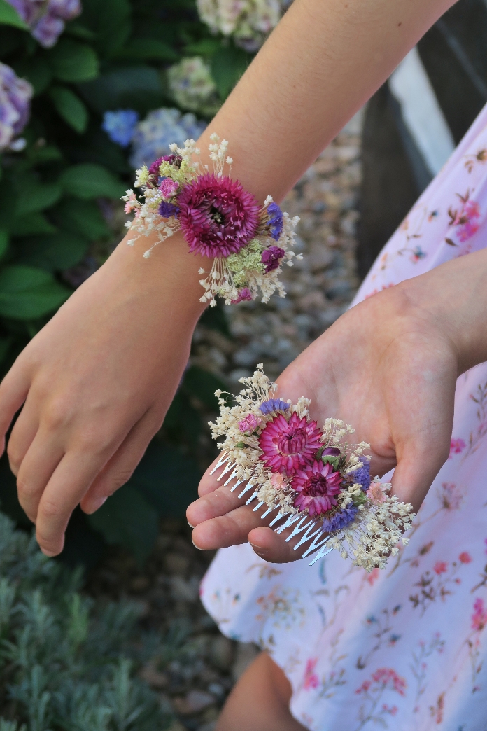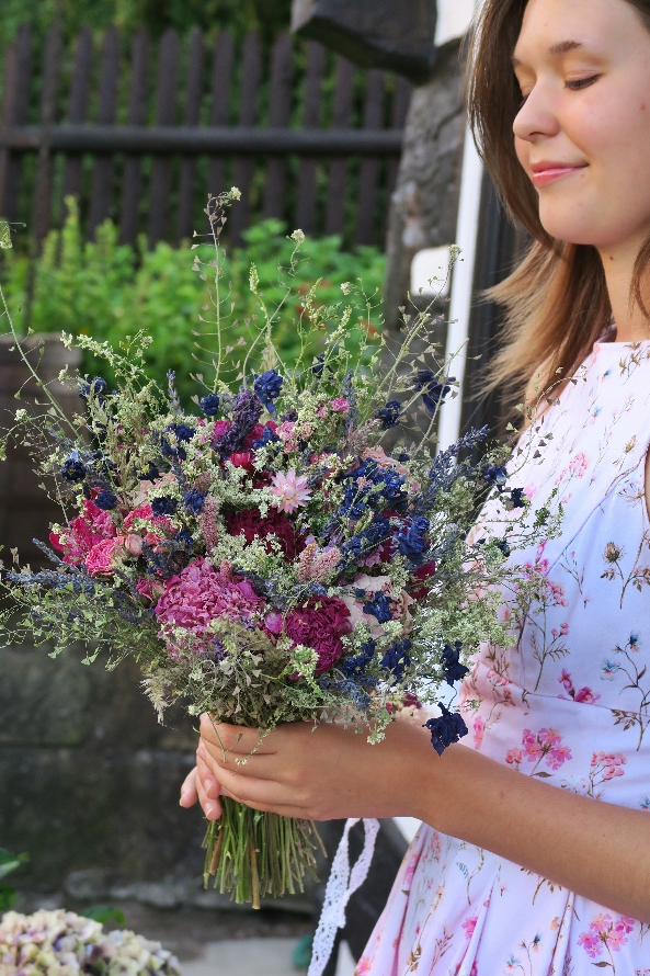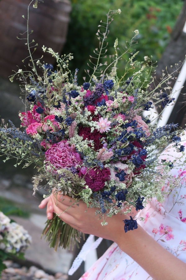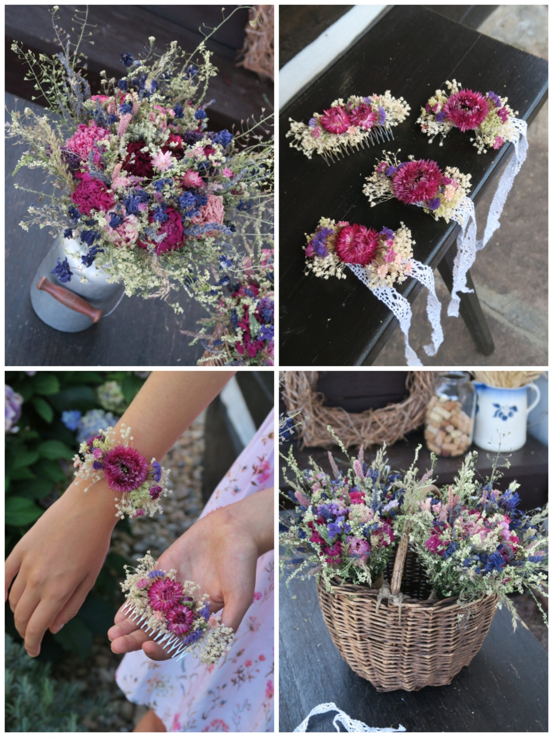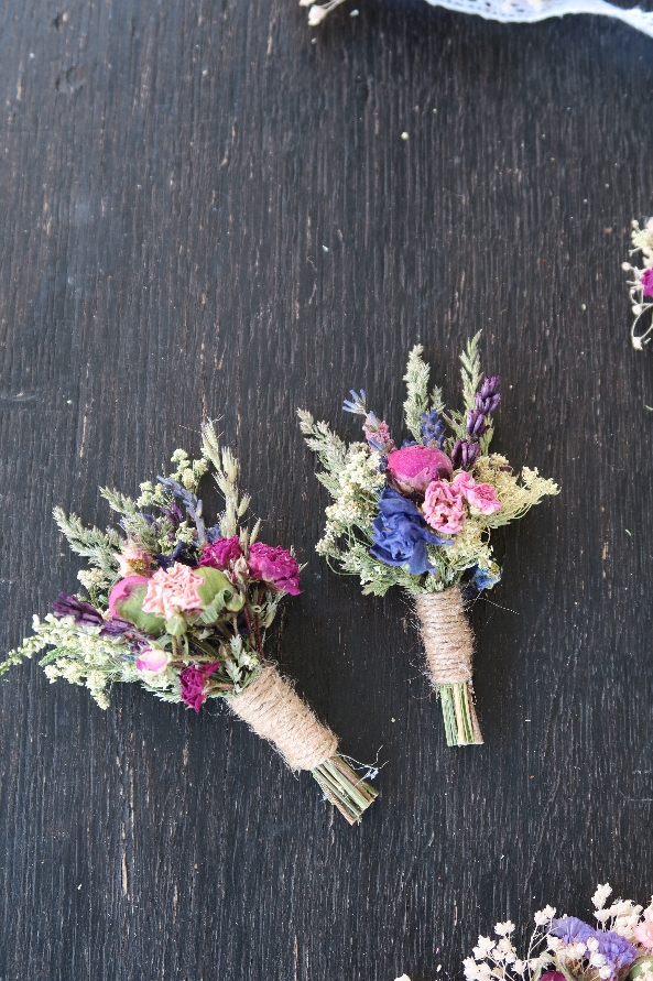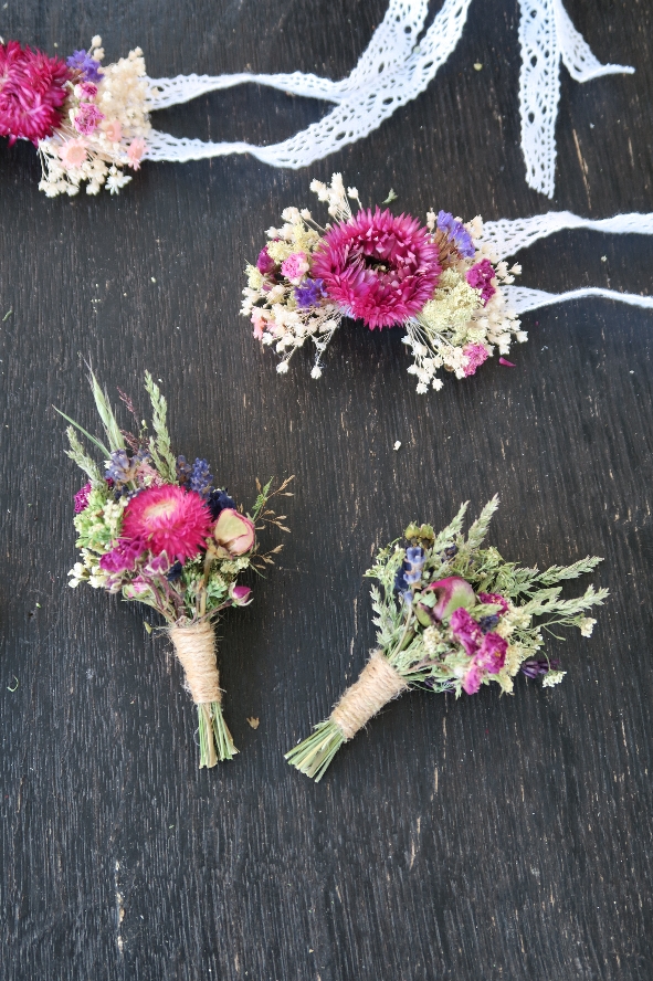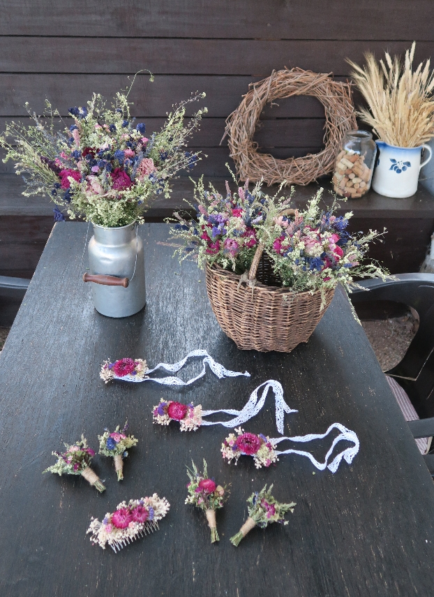 Svatební komplet ze sušených kytiček na přání obsahuje: